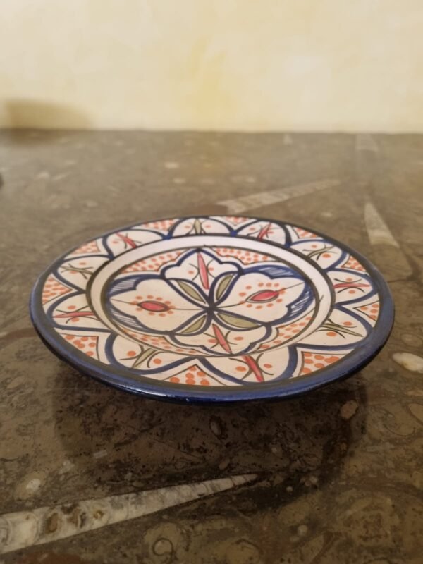 Découvrez nos petites assiettes en céramique, fabriquées et peintes à la main par nos artisans marocains. Idéales comme dessous de bol, décoration de table ou pour présenter des aliments, ces assiettes allient élégance et authenticité. Offrez-vous ou offrez à vos proches des pièces uniques et raffinées !