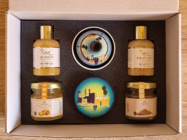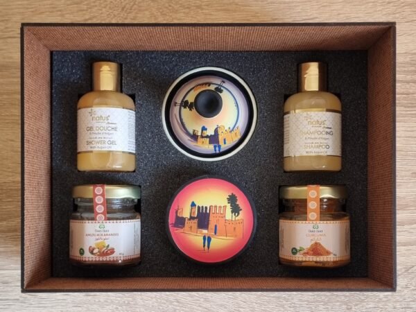 L’accueil est un moment clé, une opportunité unique de créer un lien fort avec vos clients. Avec la Box Accueil 6 Souvenir, offrez une expérience immersive qui mêle bien-être, gastronomie et artisanat marocain.