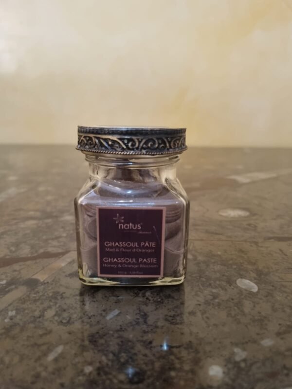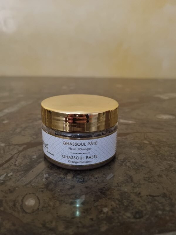 Découvrez le secret de beauté marocain avec notre ghassoul en pâte au miel et à la fleur d’oranger de 100g et 50g. Nettoie, purifie et adoucit la peau et les cheveux. Prêt à l’emploi pour une utilisation facile et rapide.