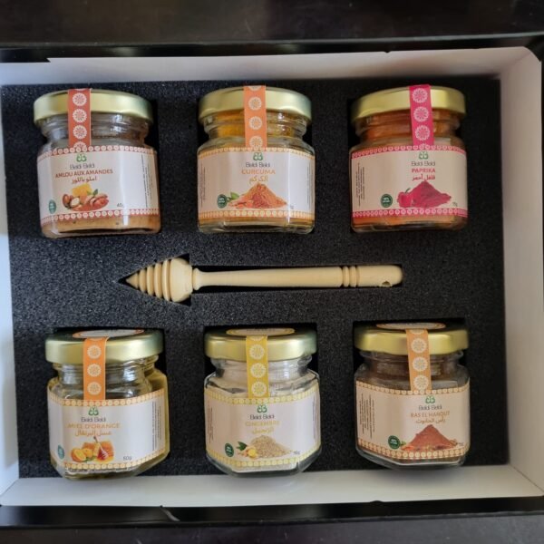 Plongez dans la richesse du terroir marocain avec notre Petite Box Terroir, une collection soigneusement choisie de produits locaux et confectionnés de manière artisanale. Chaque box est une invitation à découvrir des saveurs authentiques et uniques, tout en soutenant les producteurs locaux. Cette box compacte comprend une variété de délices qui sauront ravir les gourmets et les amateurs de traditions culinaires.